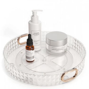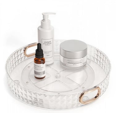 Clear PET Transparent Rotating Trays for Cosmetics & Skincare丨Multiple Tiers Stackable Designs Food-Grade Safe