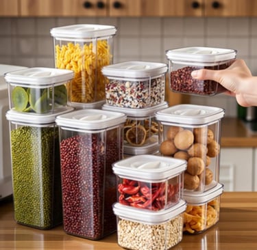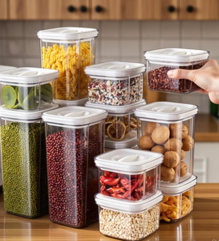 Clear PET Bins Airtight Canisters丨Detachable Tiers for Books Snacks Cosmetics丨Food-Grade Safe丨Nestable Moisture-Proof丨OEM Low MOQ