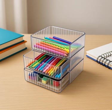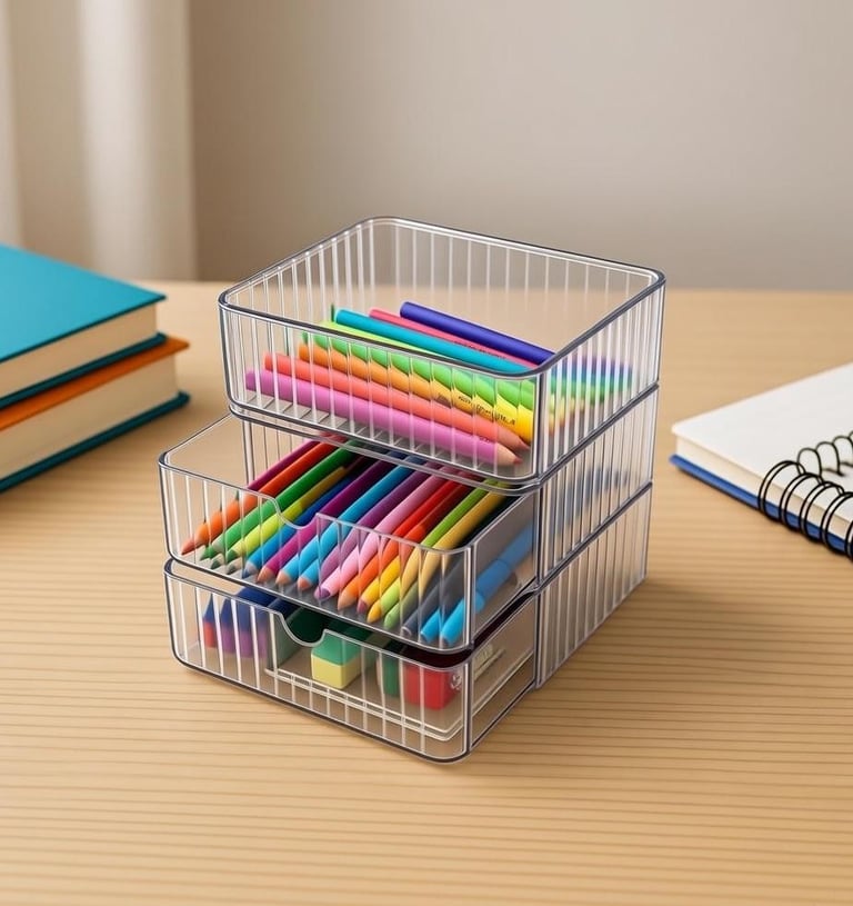 Clear PET Stackable Trays Pen Holders for Stationery Tools Brushes丨Food-Grade Safe丨Nestable Design丨OEM Customization丨Low MOQ